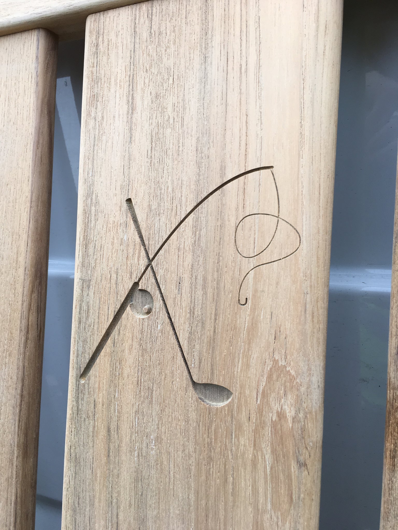 A "Fishing rod" 2d clipart fits well on the top rail of the back rest of the Warwick and Windsor benches as well as the central panel of the Kenilworth bench. However its design is such as to be suitable in any of our benches