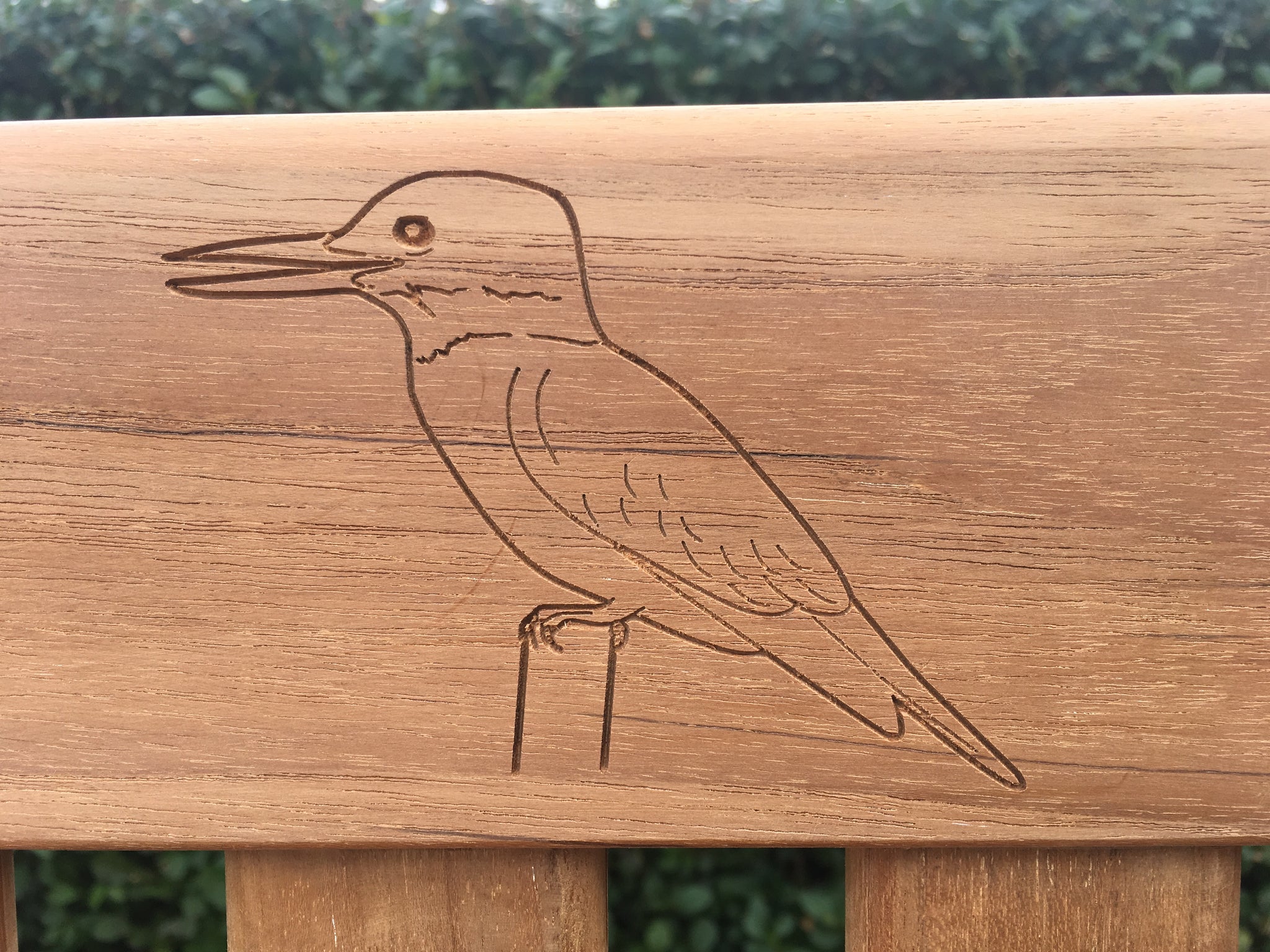 A "Kingfisher" 2d clipart fits well on the top rail of the back rest of the Warwick and Windsor benches as well as the central panel of the Kenilworth bench. However its design is such as to be suitable in any of our benches