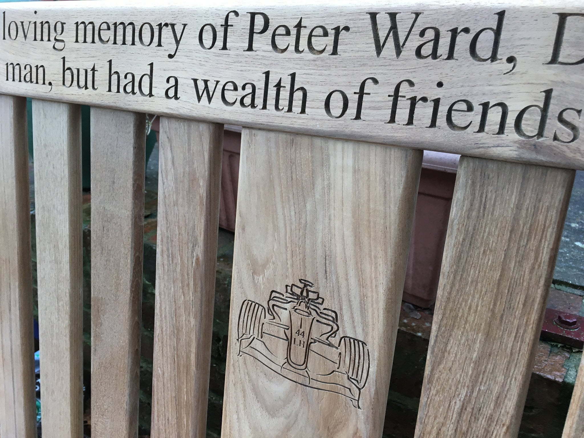 A "Racing car" 2d clipart fits well on the top rail of the back rest of the Warwick and Windsor benches as well as the central panel of the Kenilworth bench. However its design is such as to be suitable in any of our benches